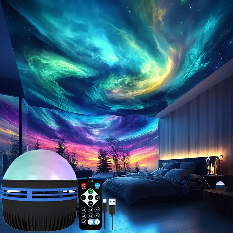 Aurora borealis projection lamp, USB socket powered, LED aurora effect lighting, with remote control, non-rechargeable, suitable for parties, birthdays, bedrooms, LED starry night lights.