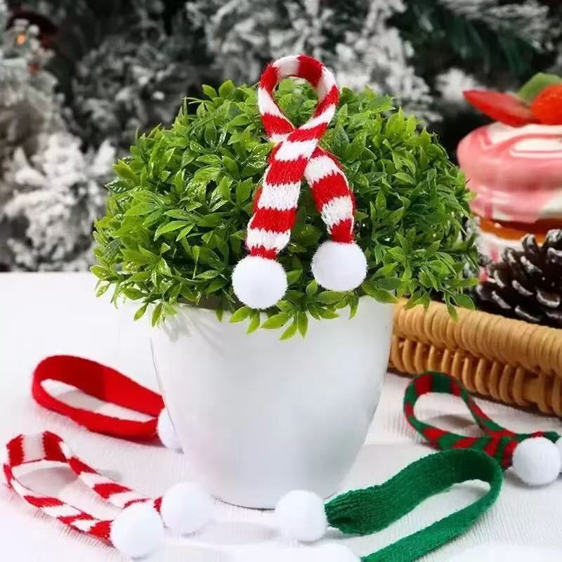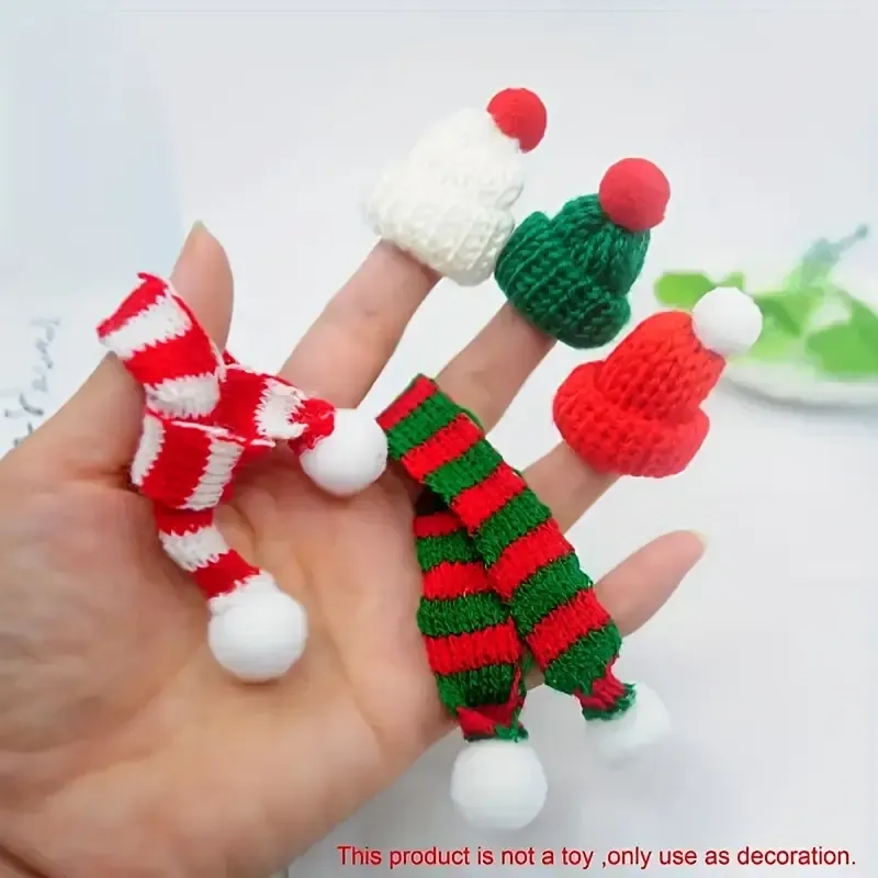 Mini Santa Hat and Scarf Set, knitted hat + mini scarf decoration, suitable for Christmas/Christmas tree/party decorations | Santa Claus decoration, suitable for Christmas and Thanksgiving