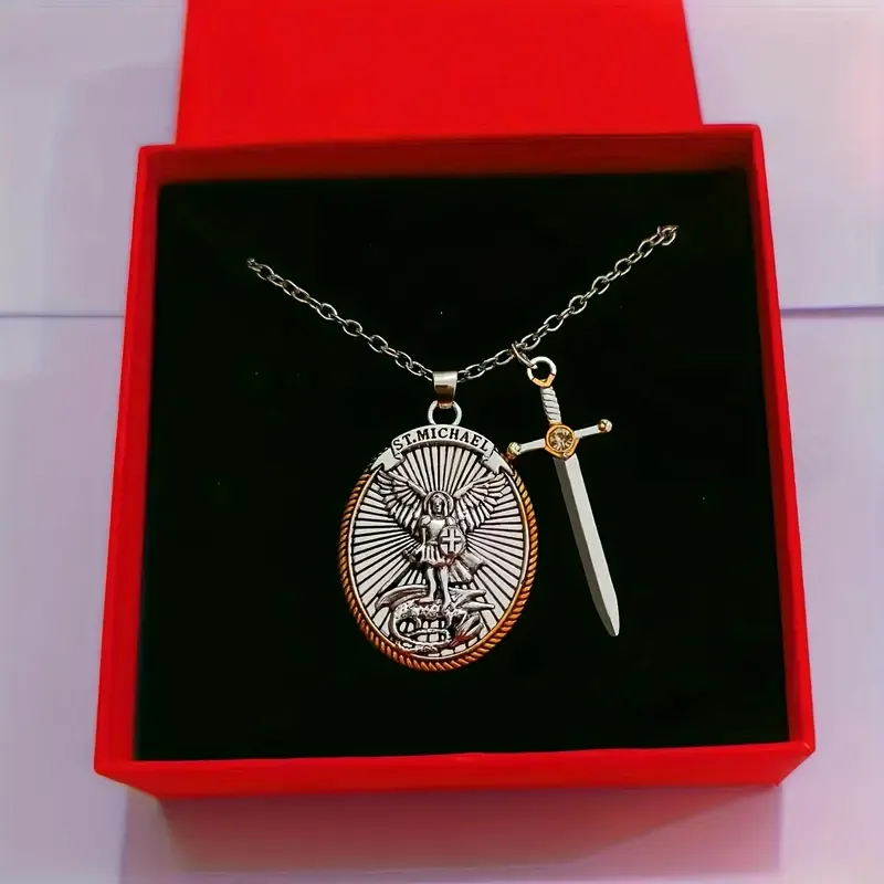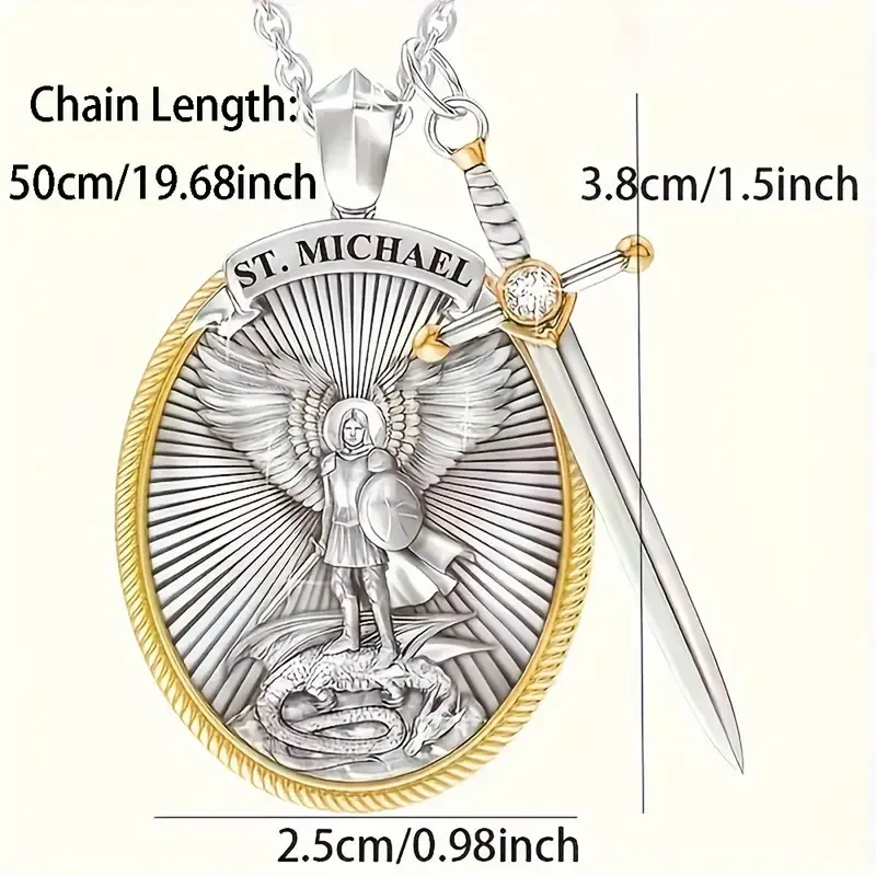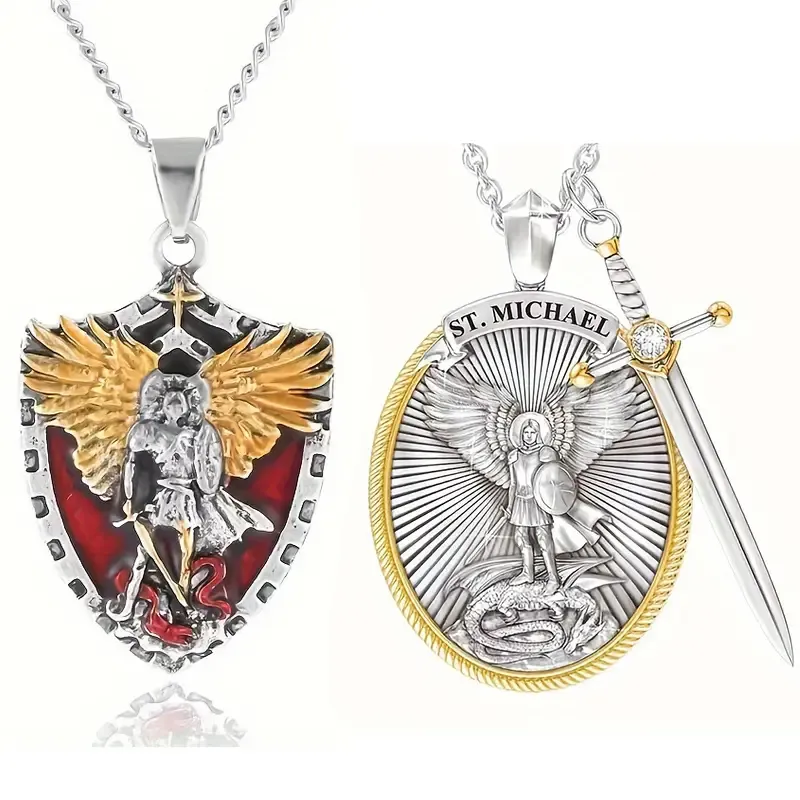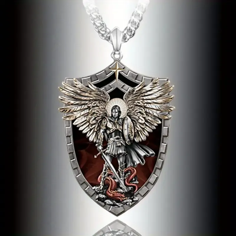 The Saint Michael necklace is a symbol of strength and faith. ✨ As the guardian angel, Saint Michael drives away darkness and fear. The unique shield and oval shape, along with the exquisite craftsmanship that recreates the sacred image, allow Saint Michael's protection to be always by your side. Whether it's a daily outfit to show your faith or a gift to convey blessings, it's perfect for adding divine power and fashionable charm to your life. Come and own this exclusive protection! 🙏